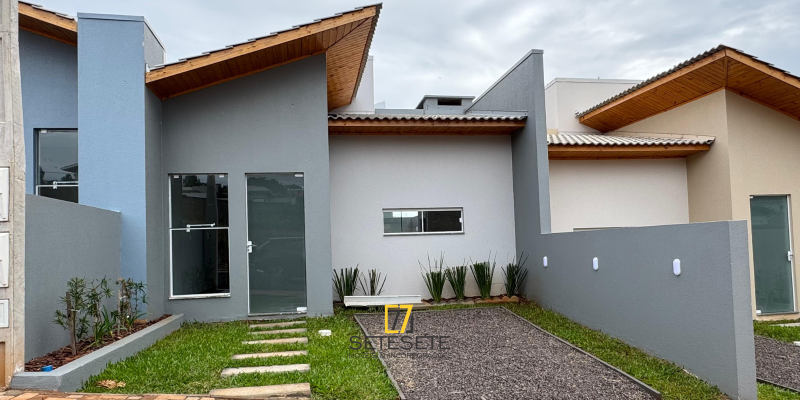 Casa no condomínio 77 park, com 2 quartos, sala, cozinha, banheiro, e espaço com churrasqueira. Casa passível de financiamento. Condomínio possui salão de festas, piscina, playground, mini quadra de areia, chimarródromo, portão com controle de acesso facial.