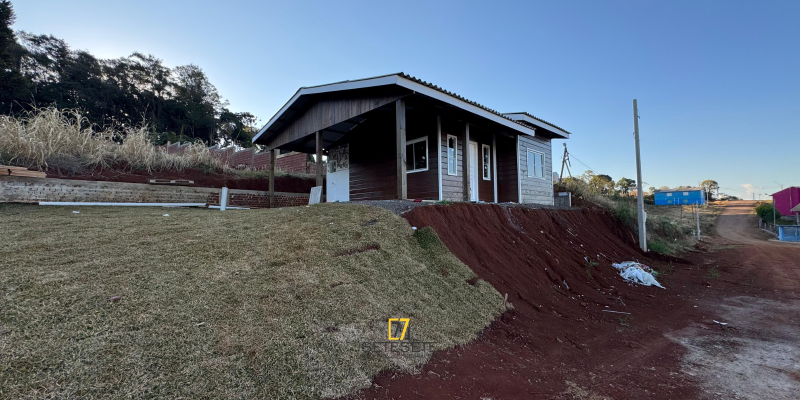 Residência mista, banheiro e cozinha em alvenaria. Paredes duplas de madeira com madeira de pinus tratado em autoclave.
